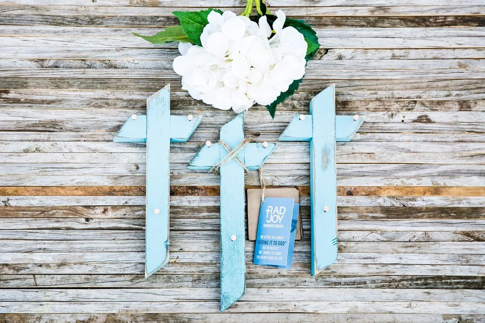 Reclaimed wood turquoise Surrender Cross by RadJoy