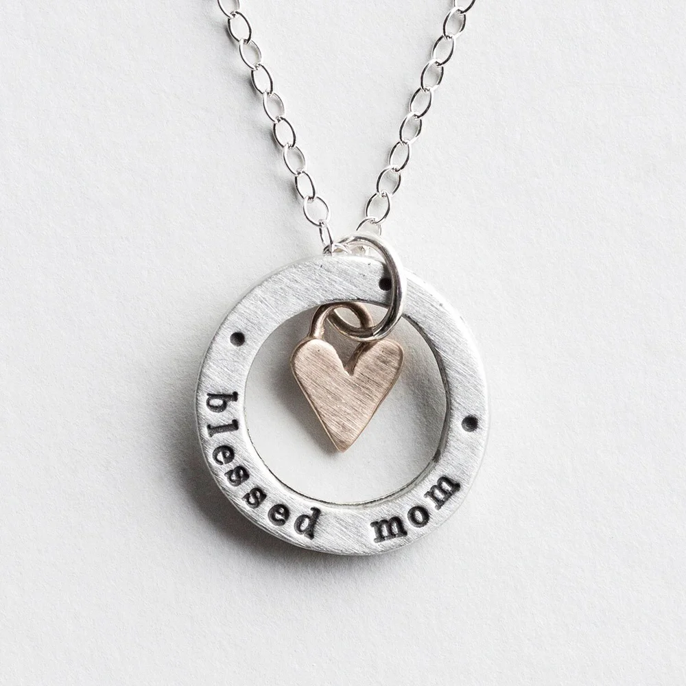 A pewter and bronze Blessed Mom handcrafted pendant by The Vintage Pearl