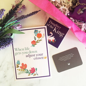 You are blessed, highly favored and more than worthy because you are the daughter of the King. This box of encouragement will remind you to wear your crown and hold your head high because you are a child of God.