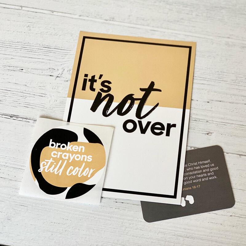 We all experience feelings of brokenness. BUT GOD can restore our hope , renew our strength and our heal broken hearts. This special box encourages you to never give up, because God is not done. No matter how broken you feel, you can never be broken because you are a child of God.