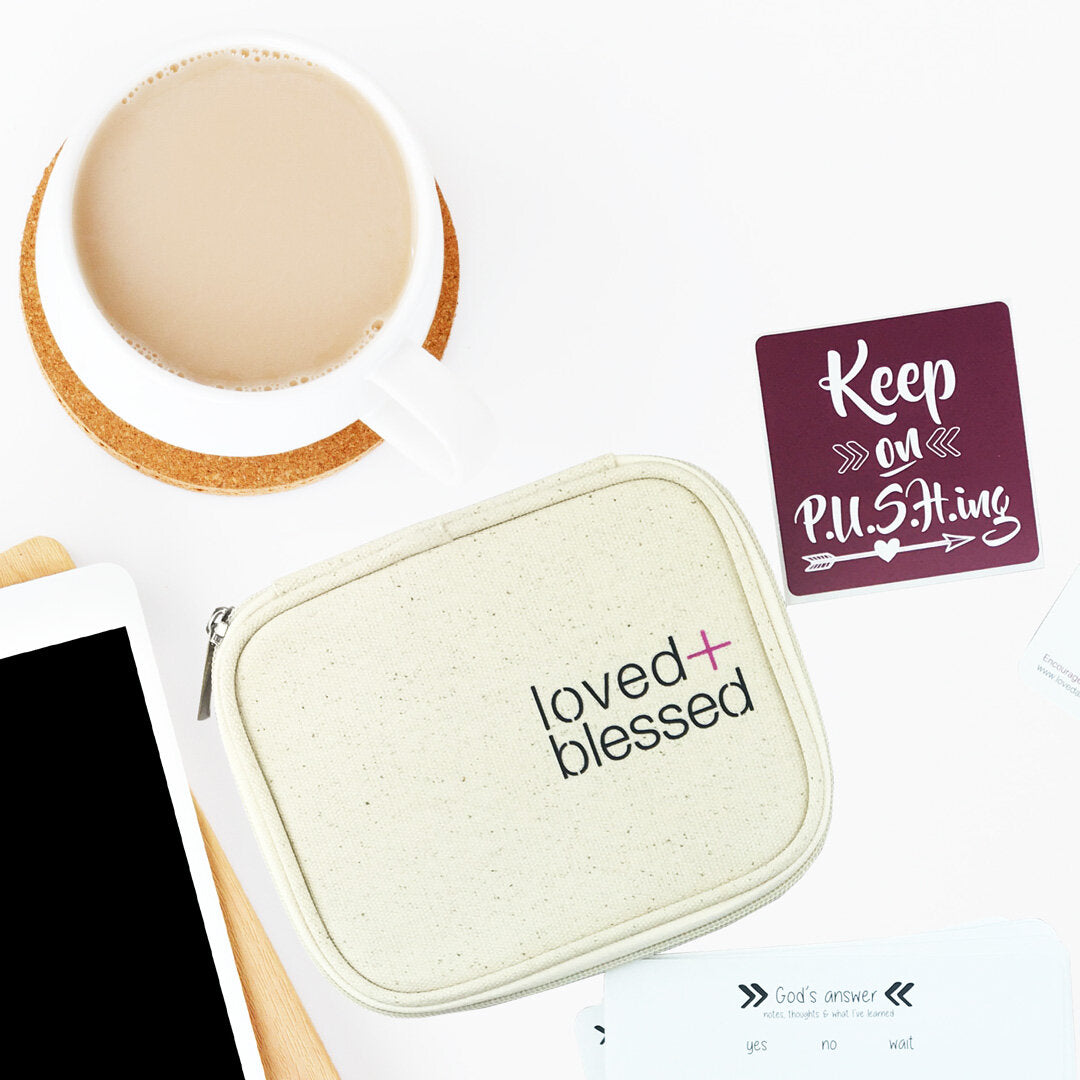 a cotton P.U.S.H. CASE to help you organize your prayers and even carry them with you