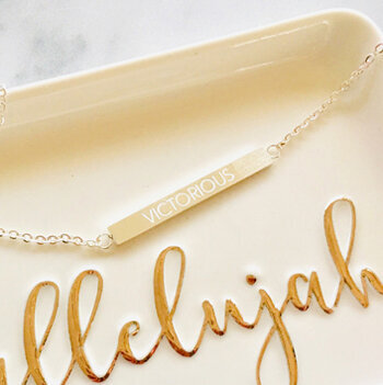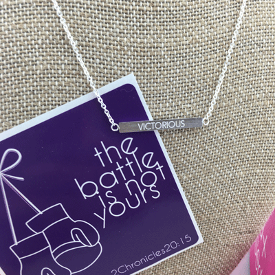 Every time you look in the mirror when wearing this necklace, let the word victorious remind you that you have victory in Christ! The battle is His, so trust Him to give you the victory!